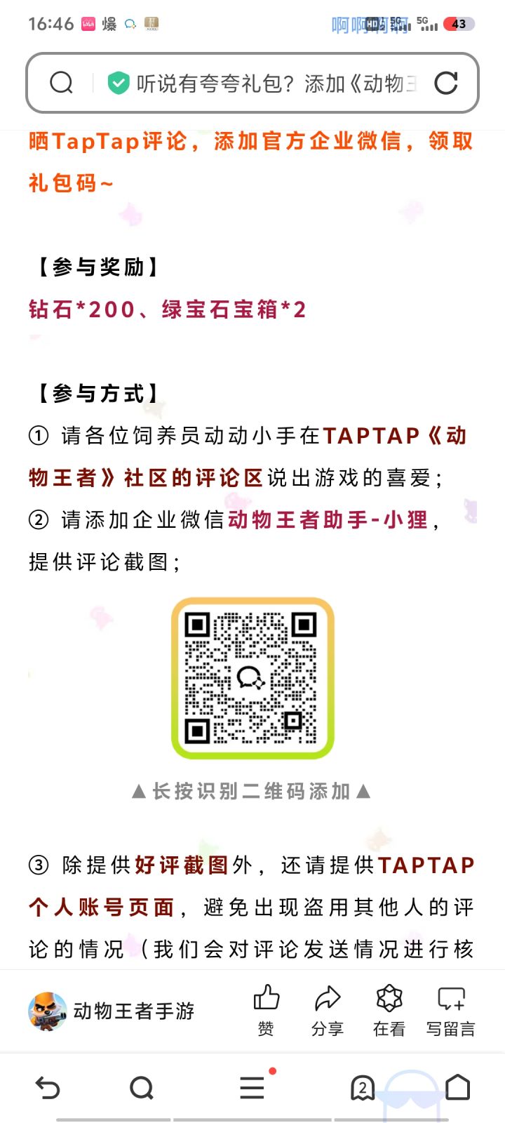 很久之前很久之前就开始玩这个游戏的各种版本,等了很久,现在终于出来了,兑换码特别多,都是一些珍贵物品,好玩,爱玩,推荐大家都来试一下#动物王者兑换码 #动物王者攻略 #动物王者