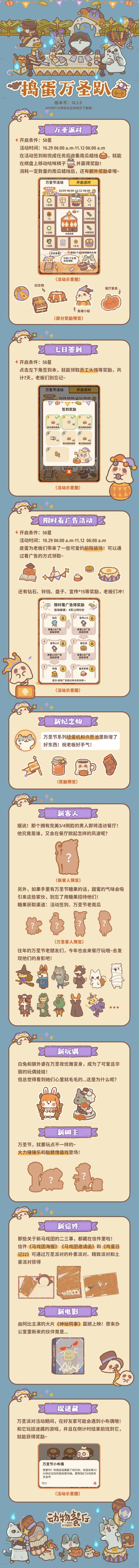 #动物餐厅 #万圣节 #动物餐厅万圣 捣蛋万圣趴,启动!版本号:10.2.0努力收集南瓜蜡烛,就可获得纪念物、鱼塘小船、餐厅家具等奖励~7天签到开启,打卡7天就可以领取超可爱员工头饰新客人和新玩偶即将到访~还有新信件和适合万圣看的新电影!👇具体更新内容戳下方查看👇