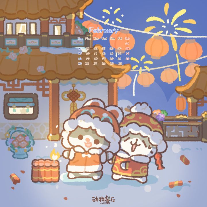 二月,春节余韵犹在,热闹不息。 #动物餐厅 #动物餐厅的日常 #壁纸 #月历壁纸