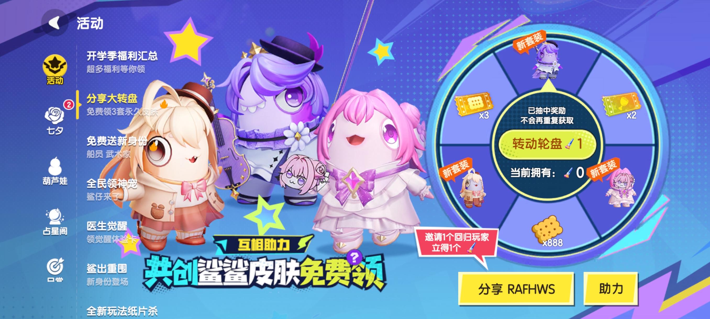 兄弟们,来互助力呀,我ID:fea61m感谢感谢,一定互助你们,都是互相帮忙嘛#香肠派对六六肠欢节#助力#游戏资讯#游戏活动