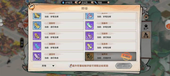 绘制符箓很长一段时间了,最多最多也就是达到妙笔生辉,一直怀疑是否有人能够达到丹青妙手,感觉这个奖励就是个摆设,根本拿不到。没想到,我今天在做绘制符箓的任务时,状态奇好,在绘制破界符时,直接一气呵成,拿下丹青妙手,不知道其他祖师有没有达成丹青妙手,评论区晒一晒呗#最强祖师 #是小草神捏 #游戏日常 #劳动创意秀