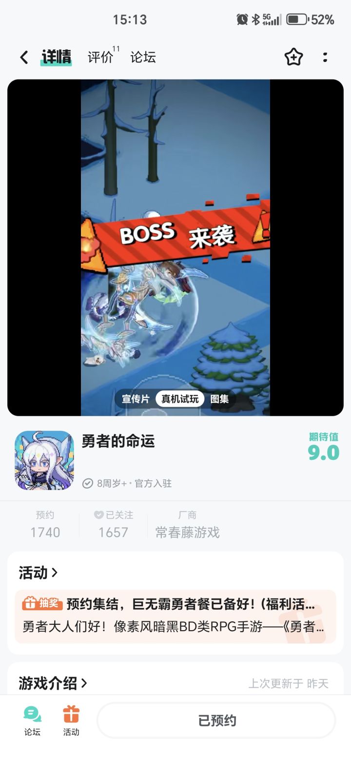 🎮名字:勇者的命运✅️平台:移动端(预约中)🏷️标签:像素风RPG、暗黑BD、冒险挑战、宠物养成------👉《勇者的命运》来袭!像素风暗黑BD类RPG,开启爽快冒险之旅!-✨【游戏内容】✨化身勇敢少年,与机械龙并肩作战,探索随机地牢。✨每次冒险都不同,提升战斗技巧,解锁装备技能。✨收集超强武器与连击,击败敌人,挑战强大Boss。-🌸【游戏特色】🌸战斗体验爽快,击败敌人超有