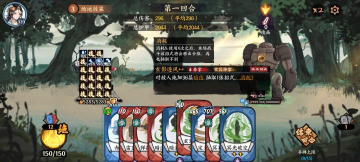 重点讲功法的常用招式首先是折梅手撑天按地:能够把暗伤复制到另一个人身上,当对面一个人时可以抽一张牌。他的优点是可以带俩张并可以保留,缺点是只能复制到一个目标身上而且会消耗。这个招式对比天山白虹掌和北冥神掌就好在它可以带两张,面对≤2的单位时候是要比其他两个要好的。而且可以搭配复制鞋和螺旋九影的幻影,效果更好旋转乾坤:造成群体伤害,抽一张牌,这个招式可以带两张,可惜会消耗,这个就看个人喜不喜欢