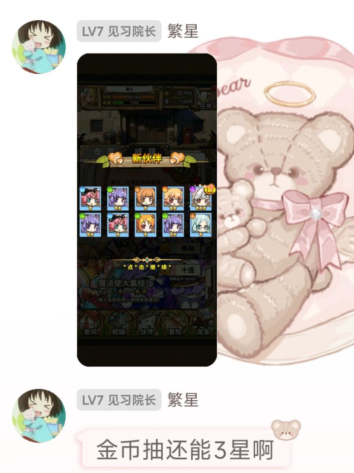 很多小宝问能不能金币出三星?这里静静去翻了多多的聊天记录把图片找到了哈哈!真的欧到没边了!羡慕!昨天还有另一位小宝十连三个三星!啊啊啊啊为什么这运气不是我哒!我吸吸吸吸~当然也祝各位宝宝都欧气满满~全部完美毕业!#魔法祈幻界 #今天你出优了吗 #每日养宝宝 #金币出三星 #十连三金