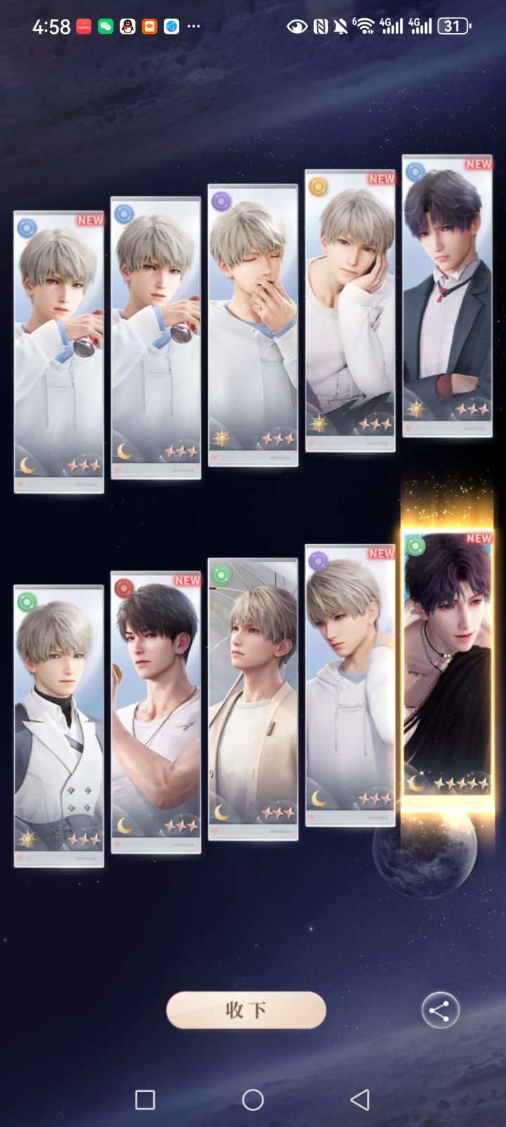 好好,70抽结束战斗。开心(^O^)。#恋与深空 #十连出金