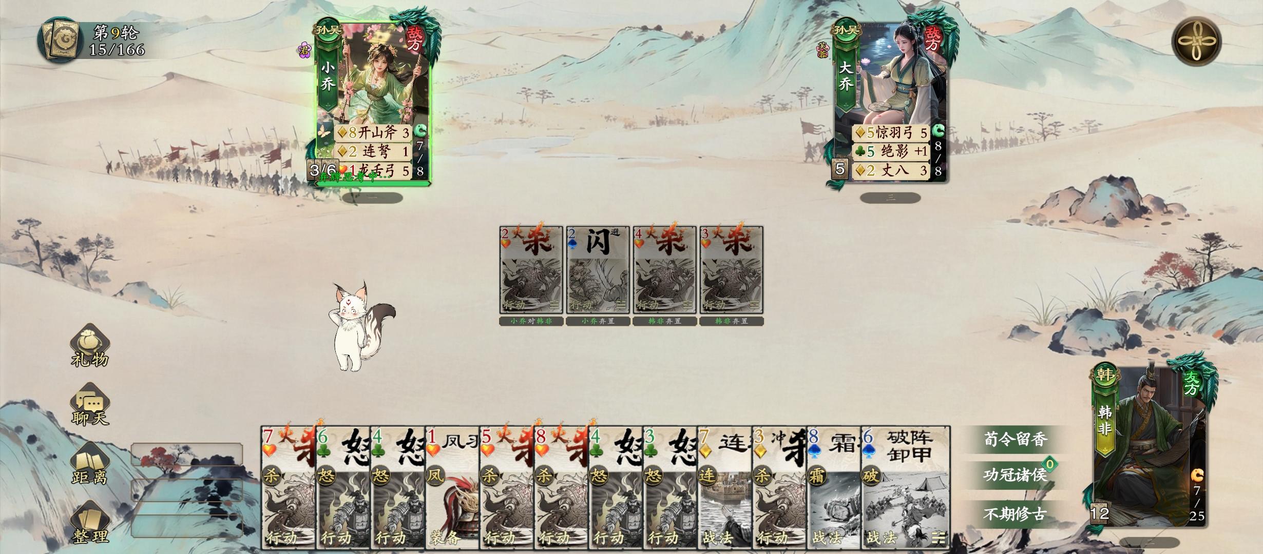两个要素:孙权队友和刮骨疗毒。先对孙权造成伤害,刮骨疗毒把他牌盖上,在把不要的牌全给孙权,人机孙权会跟你对半分,多来几次就OK了,注意没有以德服人前别选新队友,可能会把孙权挤掉。#代号杀 #千里单骑