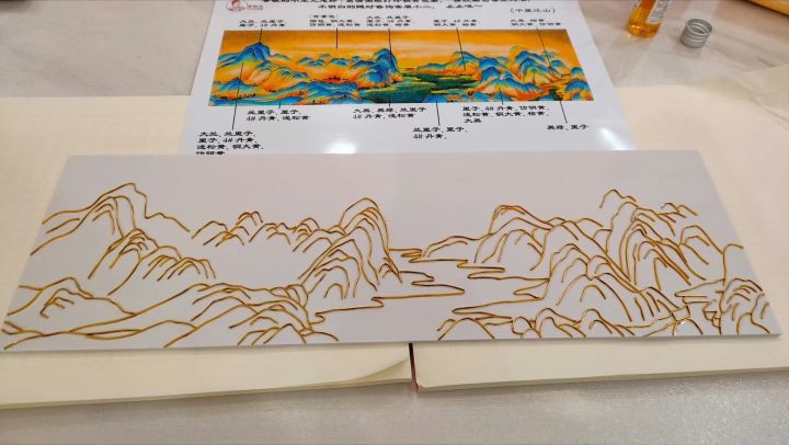图纸可在主页另一个帖子找到。 黑暗处拍的色差真的很大,手机自己把颜色给修成复古的了(褪色版)。 #物华弥新 #物华弥新创作者激励计划 #千里江山图