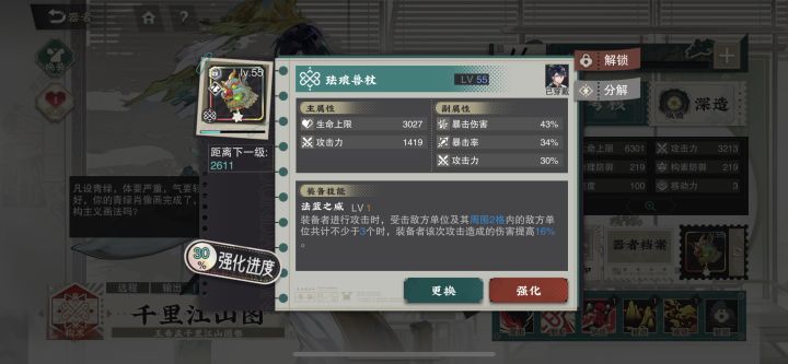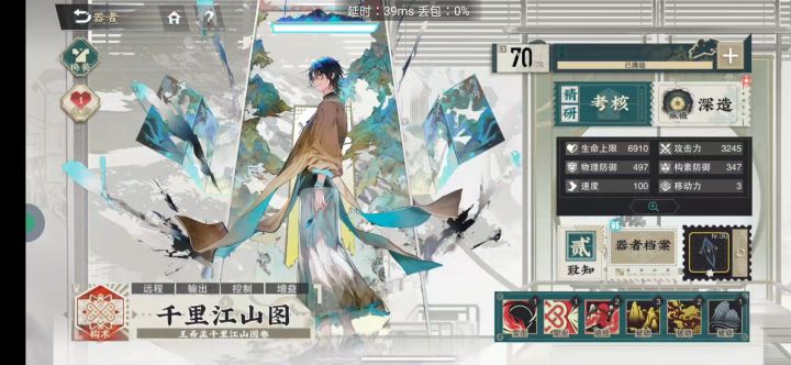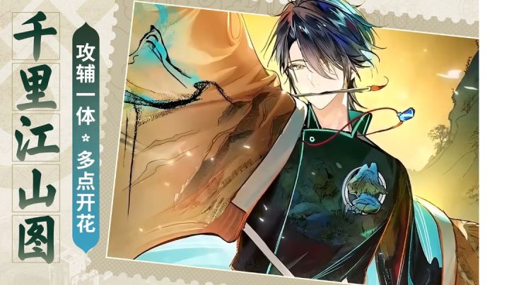 人物介绍:千里江山图(江山图,画笔,山水哥)推荐抽取0命指数: ⭐⭐⭐⭐推荐抽取3命指数: ⭐⭐推荐抽取6命指数: ⭐⭐(6命效果:增加绝技伤害20%) 人物技能介绍: 常击(0消耗):对目标造成1.0倍率的法术伤害,2格距离,获得一层峰石。 职业技能(0消耗):对目标造成1.2倍的法术伤害,2格距离,获得1点能量以及一层流纹。 绝技(3消耗):对目标以及周围1格敌方全体造成1.