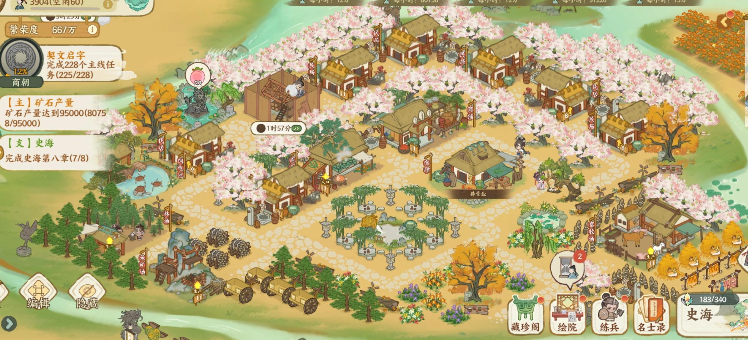 14级解锁历法台(正常进度第二天即可),这玩意前期很肝,只有一个升级队列,隔一会儿就得上线。 夏朝前面的这些耗时比较短,肝点的话是可以都点满的。 但如果你上线次数比较少,推荐加点顺序为: 兵+1→木/铁3级→铜币5级→兵+1→科研效率→木/铁3级→铜币5级→兵+1→兵/名士属性加成 (木和铁根据你实际情况先选一个升级就行) 五天玩下来,除了铜币之外资源都不怎么缺(主要是卡升级时间),所以上面在提升
