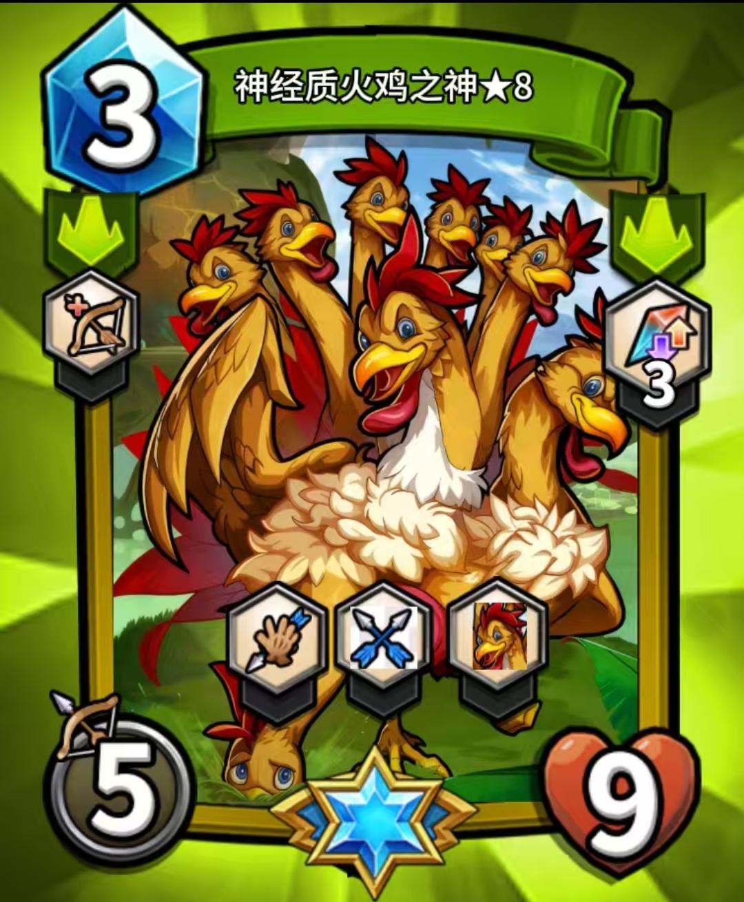 阵营:命运与混乱 品质:精英 生命:9 费用:3 基础技能:随机伤害6 技能1,命运之力2 抉择技能,混乱2:秘密投掷。 命运3: 蛊惑:我方战斗回合开始时,进行一次三骰子投掷,并让对方进行猜测,猜对则获得已方牌库里的一张怪兽牌,猜错则按照以下情况来惩罚。 1:选择大猜错了,对方失去场上的随机一张牌。 2:选择小猜错了,对方场上怪兽无法行动一回合。 3:豹子猜错了,对方场上怪兽技能全部被删除一回合