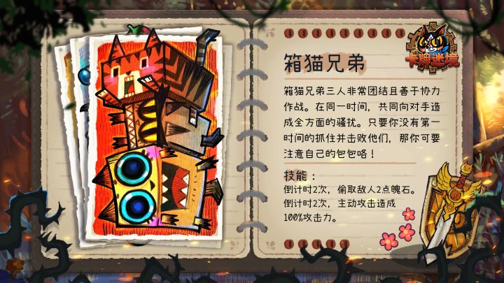 🍡游戏名:《卡牌迷境》🍧游戏类型:卡牌 | 买断制 | 单机🍬推荐程度:⭐️⭐️⭐️⭐️⭐️👉冒险家将携手猫咪勇士通过探索各个关卡,击败变异的怪物喵。拯救深陷噩梦的艾琳,将噩梦变成美梦的冒险之旅。👉手绘哥特暗黑童话风,感受独特的暗黑风格猫咪形象:帅气的艾斯猫猫、变异的猫咪怪兽、猫眼巨人、狂野稻草猫…🍭游戏现在首发上线只需要9.9就能带回家,还赠送《铸时匠》和《法洛伊:幻境》,而且还可以送