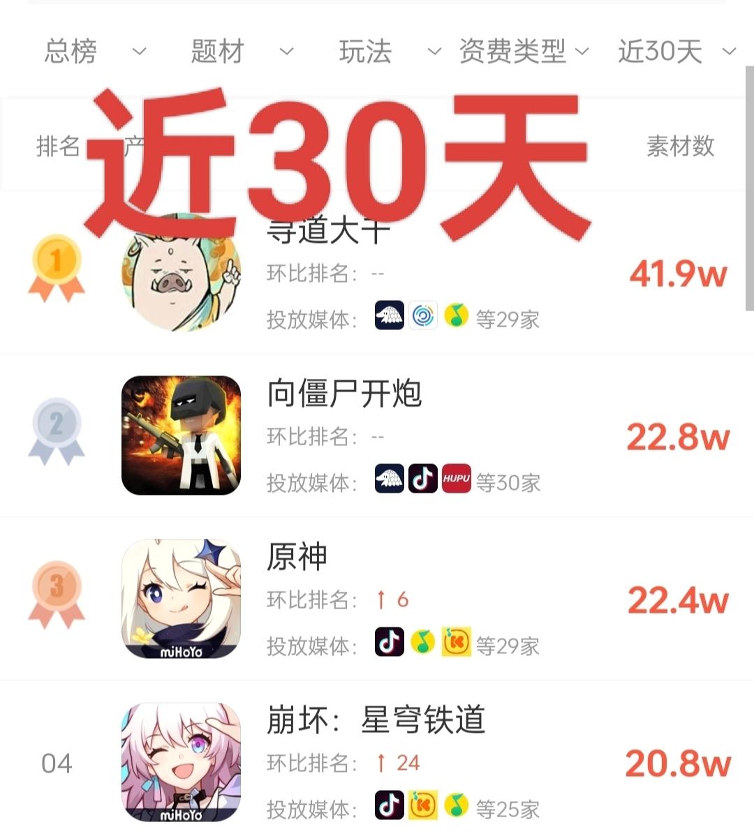 如图上数据显示,结合90天数据分析,可见最近一月明显买疯了,早知道这还只是传统平台买量,这种买量成本确实恐怖最近,原神上纳塔新版本,还能理解,崩铁只是正常版本,最近也没什么有力的竞品。难道黑猴给米的压力太大了?#今天游戏圈发生了啥 #原神 #游戏日常 #原学家