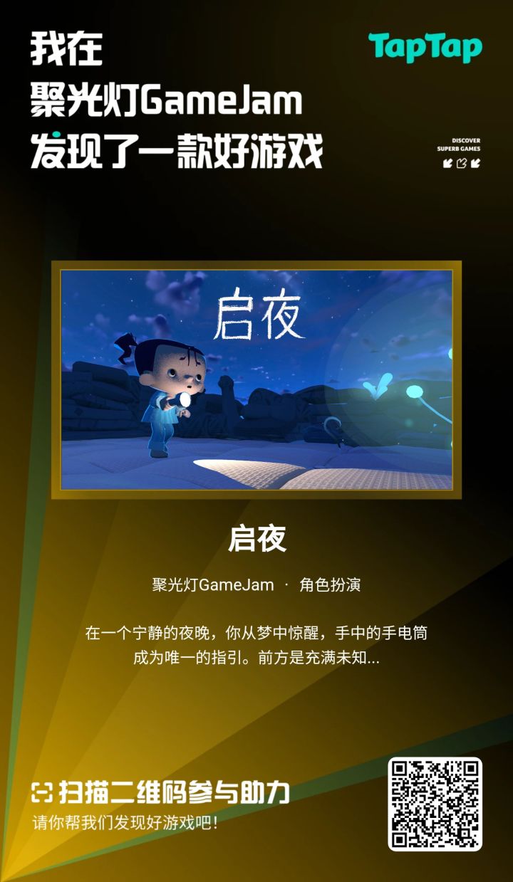 • 12人团队精心打造!• 轻松的3D冒险解谜!• 梦境里有趣又神奇的谜之生物!现已开启测试~欢迎扫码试玩~#原来是启夜呀 #发现好游戏 #TapTap聚光灯独立游戏 #聚光灯游戏创作挑战