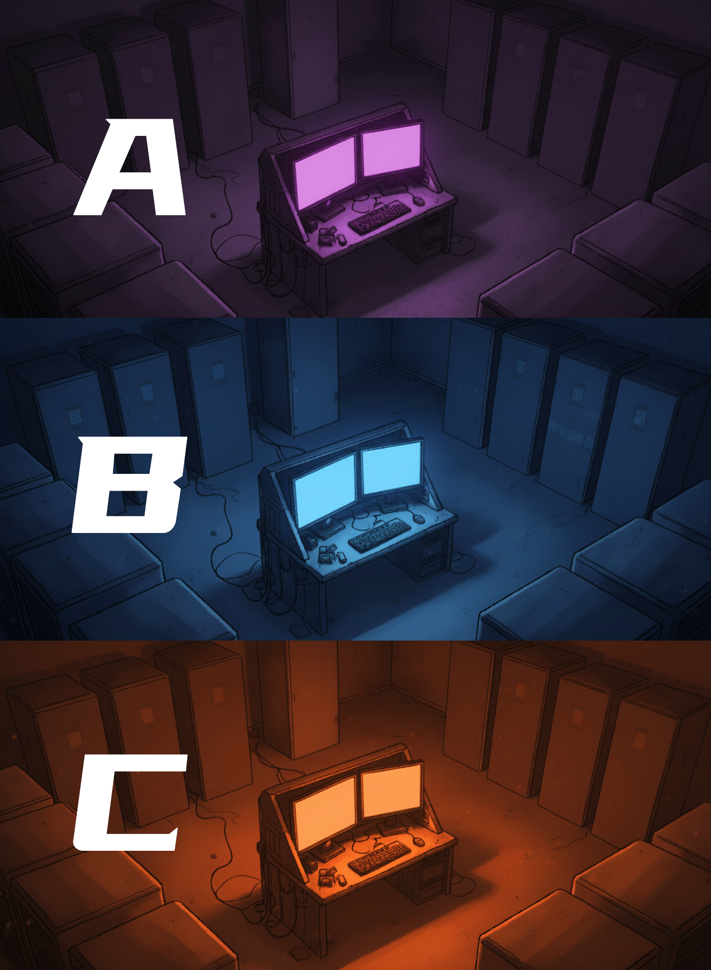 HI,各位关注我们的小伙伴们!我是独立游戏《漏洞回响》的策划![派对R] 今天和大家分享我们其中一个核心场景——“服务器机房” 的诞生过程!(就是头图这张啦👇) 第一次看到策划案里关于这个场景的描述时,我就知道,这地方必须又酷又让人窒息。这里不是一个普通的机房,而是主角阿哲意识被囚禁的“数字牢笼”,也是玩家揭开整个故事最核心真相的地方。 聊聊我的设计思路吧: 1. “牢笼感”是第一要义 大家可以看