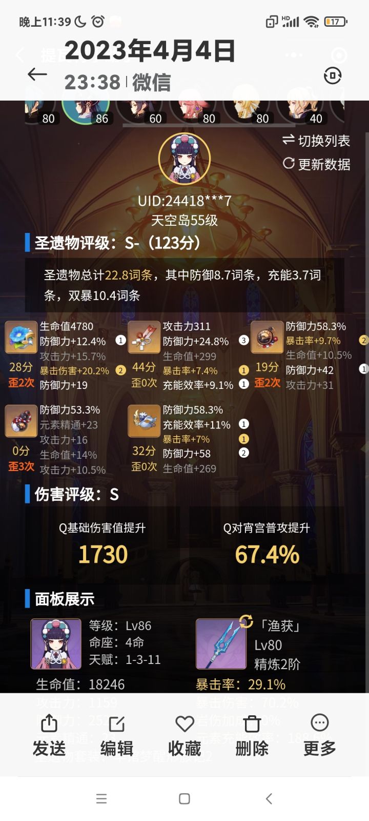 面板及圣遗物面板的在下图,以及裸融化跟裸伤,大佬们帮忙看看,这练度算毕业吗?感觉比堂主少好多好多伤害#原神#原神宵宫#原神萌新求助