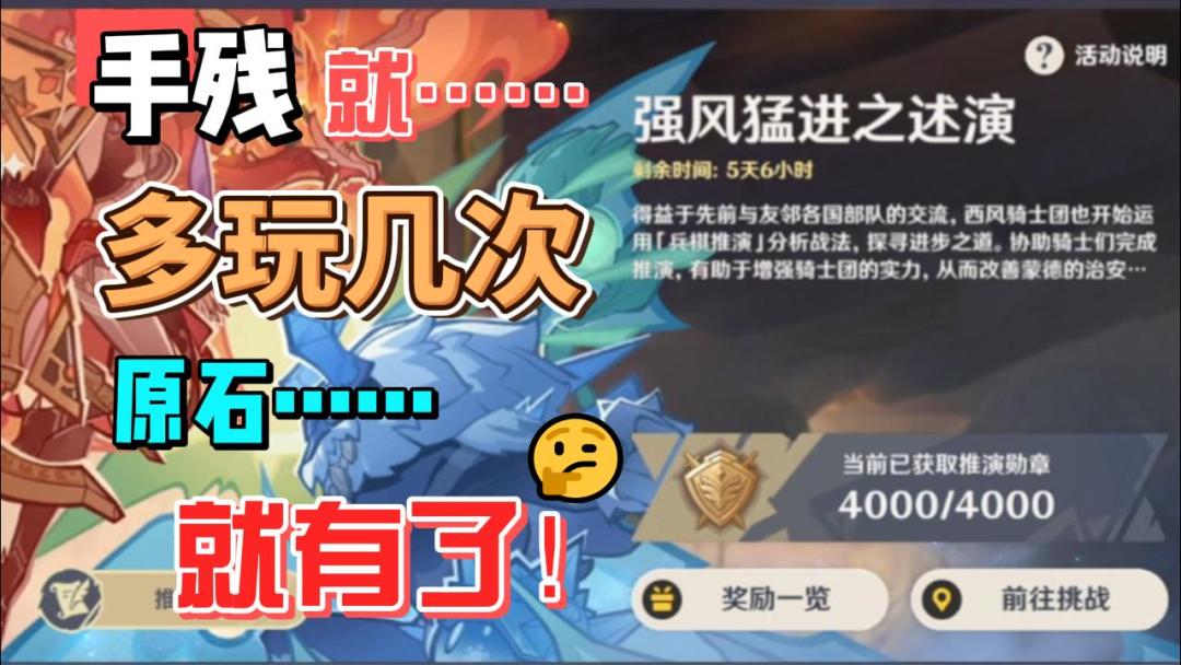 真的,手残如我,也就只能靠反复玩拿原石了……(=。=) #原神 #原神创作者激励计划 #原来你也玩原神 #原神活动送原石 #原神强风猛进之述演 #游戏种草计划