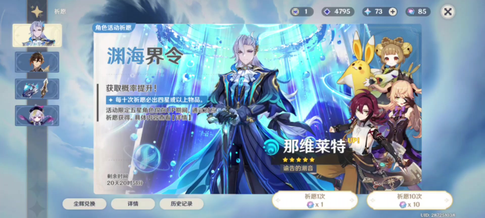 换个闲云亲友队,去闲云的山上,别去敲门,因为你会得到一句仙人不想见人(咱就是说寓意不太好)然后有帝君换帝君,坐在帝君该坐的位置上,然后把画面摆正(不能歪啊,寓意不好)然后抽卡,我是直接跳过的好消息出金了而且提前小保底,还是双黄新角色,坏消息,大保底没了抽完我才意识到闲云是风系,我已经把所有风系五星抽完了(窒息)这下真的成了地图探索小能手了(这一发十连抽完我一颗原石都没了,一个晚上沉玉谷