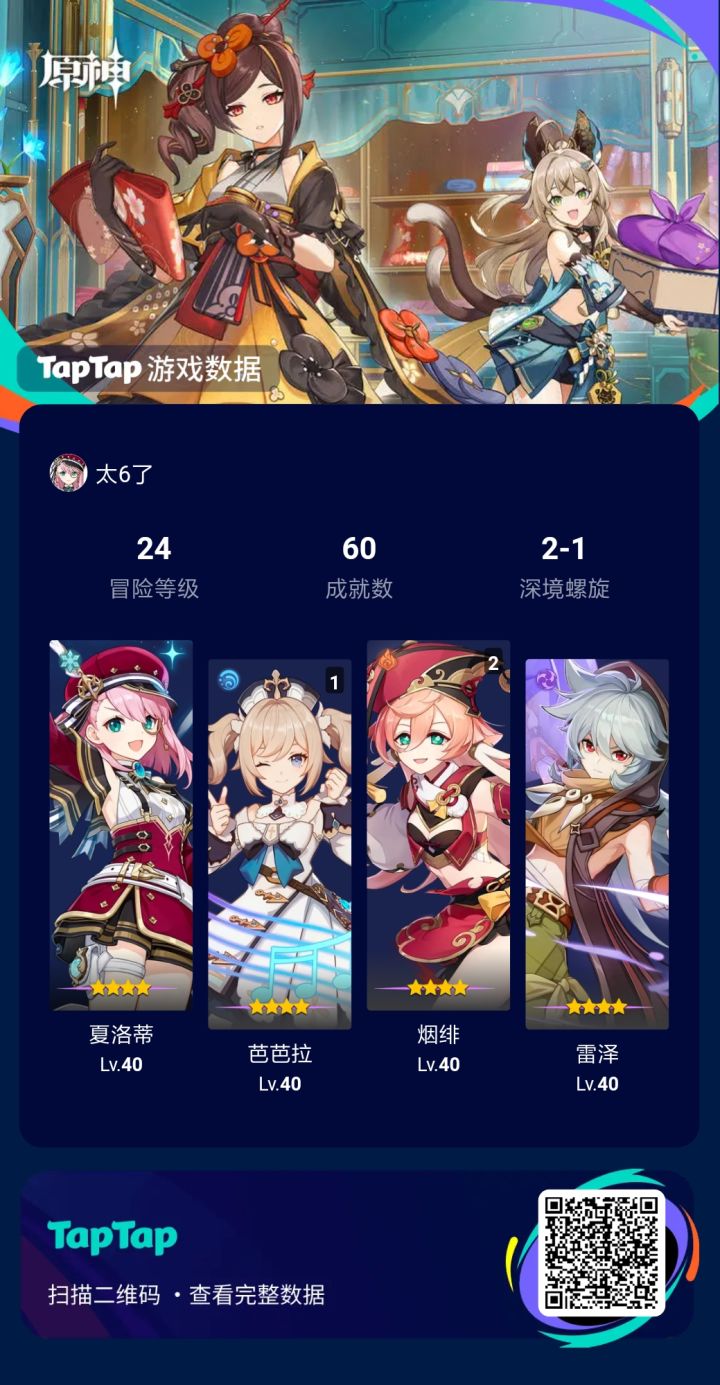 #原神数据 #我的原神数据 现在队伍是雷泽,烟绯,芭芭拉加久岐忍