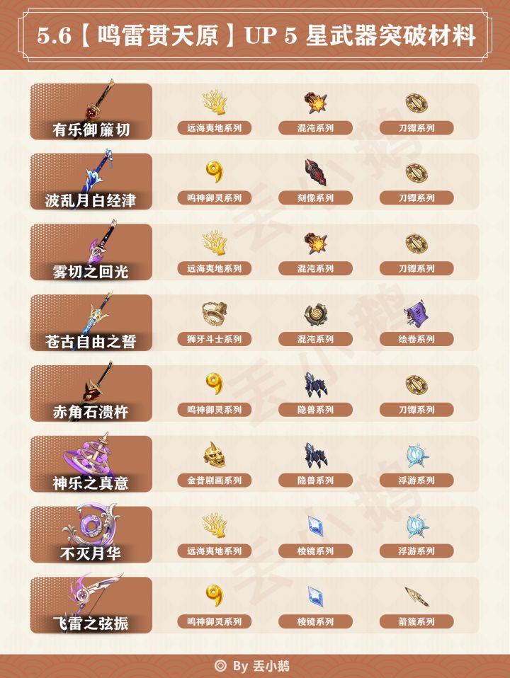 【V5.6】鸣雷贯天原Up5星武器突破材料