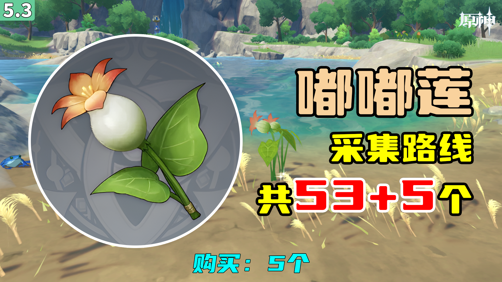 【原神】嘟嘟莲采集路线(53+5个),购买:5个