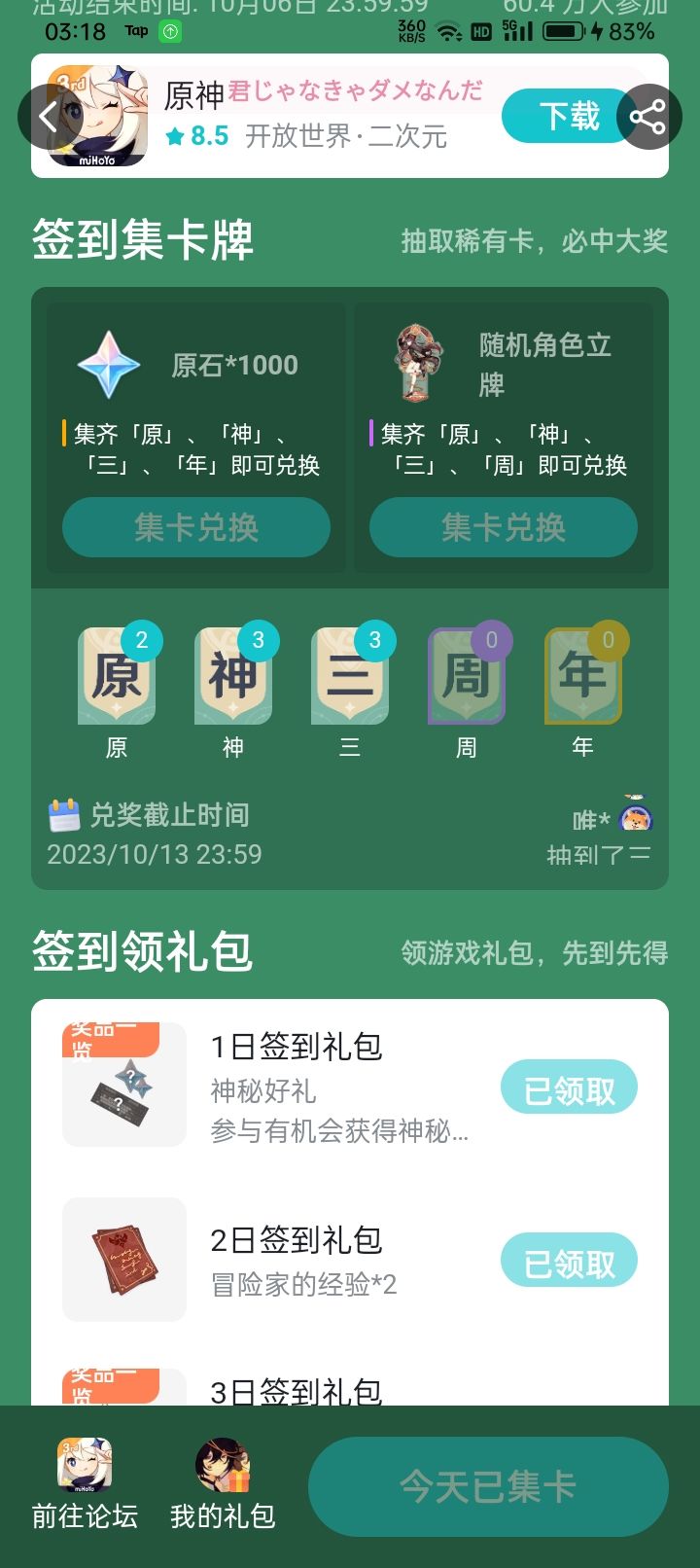 话说tap的签到活动是多久一轮啊,还以为是一个版本一次呢#福利 #原神 #签到活动 #原神集卡活动 #游戏福利
