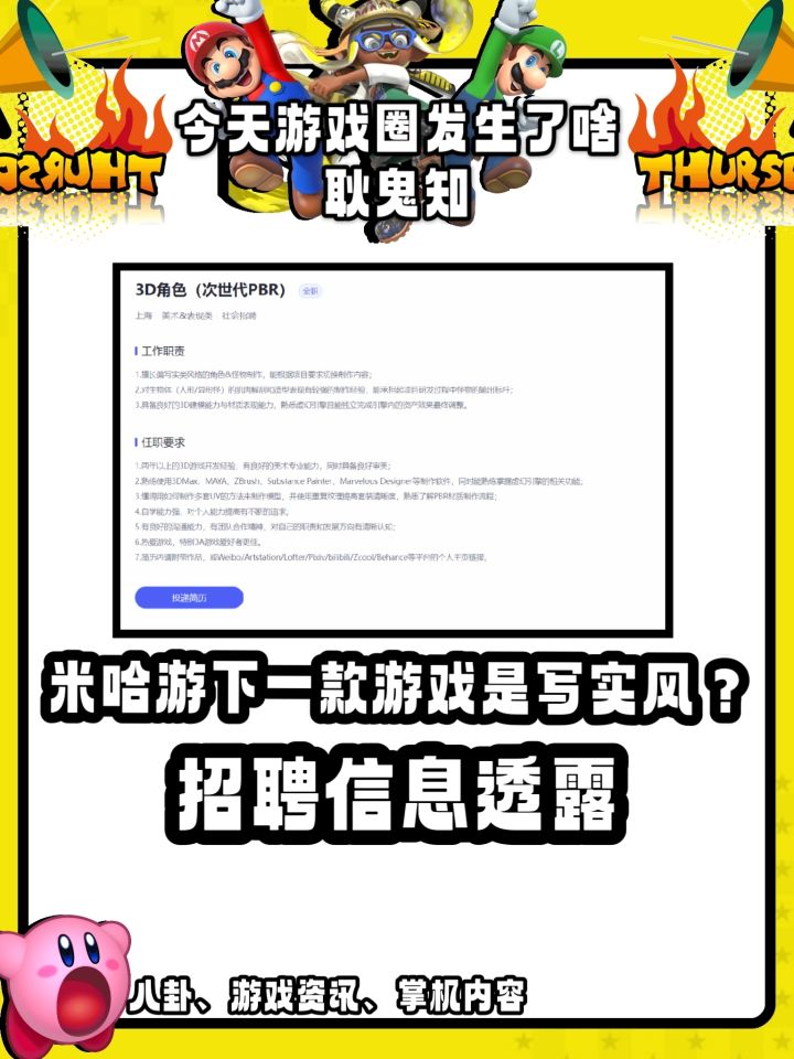 近日,米哈游在其官方招聘平台上发布了全新职位,正在为下一款3A游戏招募人才:“热爱游戏,特别是3A游戏爱好者优先。”招聘信息中可以看到,该职位需求一名3D角色(次世代PBR)建模师,要求“擅长偏写实类风格的角色&怪物制作”,“对生物体(人形/异形怪)的肌肉解剖和造型表现有较强的制作经验”,此外还要具备良好的建模能力并熟悉虚幻引擎。(又准备来大的是吗)#二次元 #米哈游 #今天游戏圈发生了啥#原神PC