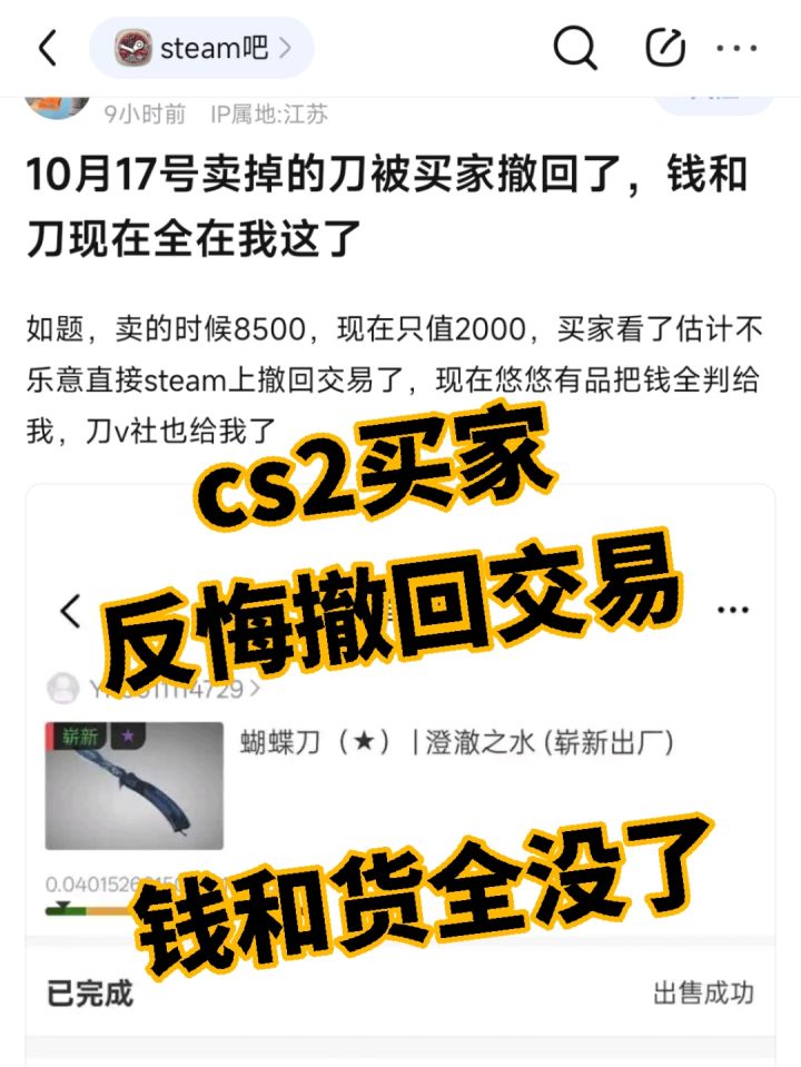 cs2买家反悔撤回交易,钱和货全没了