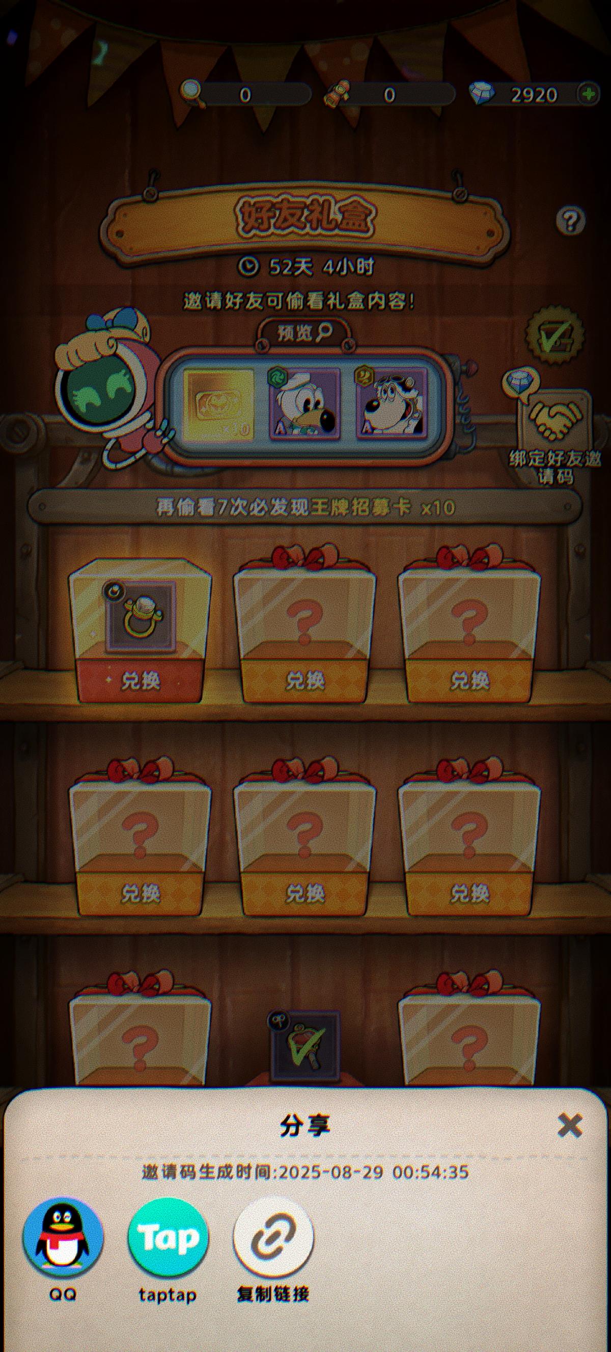 《发条总动员》免费得招募券和飞行员!在主界面【好友礼盒】活动中输入邀请码7938127501384帮我绑定,你也能领助力奖励!速来下载! 注:受邀好友的创角时间需晚于邀请者的邀请码生成时间。邀请码生成时间可以点击活动界面中的【邀请好友】按钮查看。我的邀请码生成时间:2025-08-29 00:54:35#邀请码 #发条总动员 #发条发条总动员x猫和老鼠联动#发条发条总动员X猫和老鼠联动#发条发条总动员X猫和老鼠联动