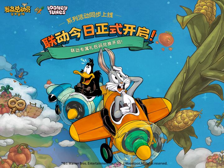 发条总动员 x 乐一通联动将于10月24日开启,胡萝卜派对等你来嗨! 当命运的发条开始转动,“兔八哥”与“达菲鸭”的争吵戛然而止——他们被一股神秘力量拽进了奇幻的云上世界! 兔八哥叼着胡萝卜悠闲起飞,达菲鸭挥舞水气球暴躁跟上!这对经典拍档即将掀起云上世界的狂欢风暴! 一根失控的神秘发条,竟将这对永远欢脱的经典拍档——兔八哥和达菲鸭,卷进了我们的复古漫画异世界! 胡萝卜、火箭筒齐登场,原本井然有序的