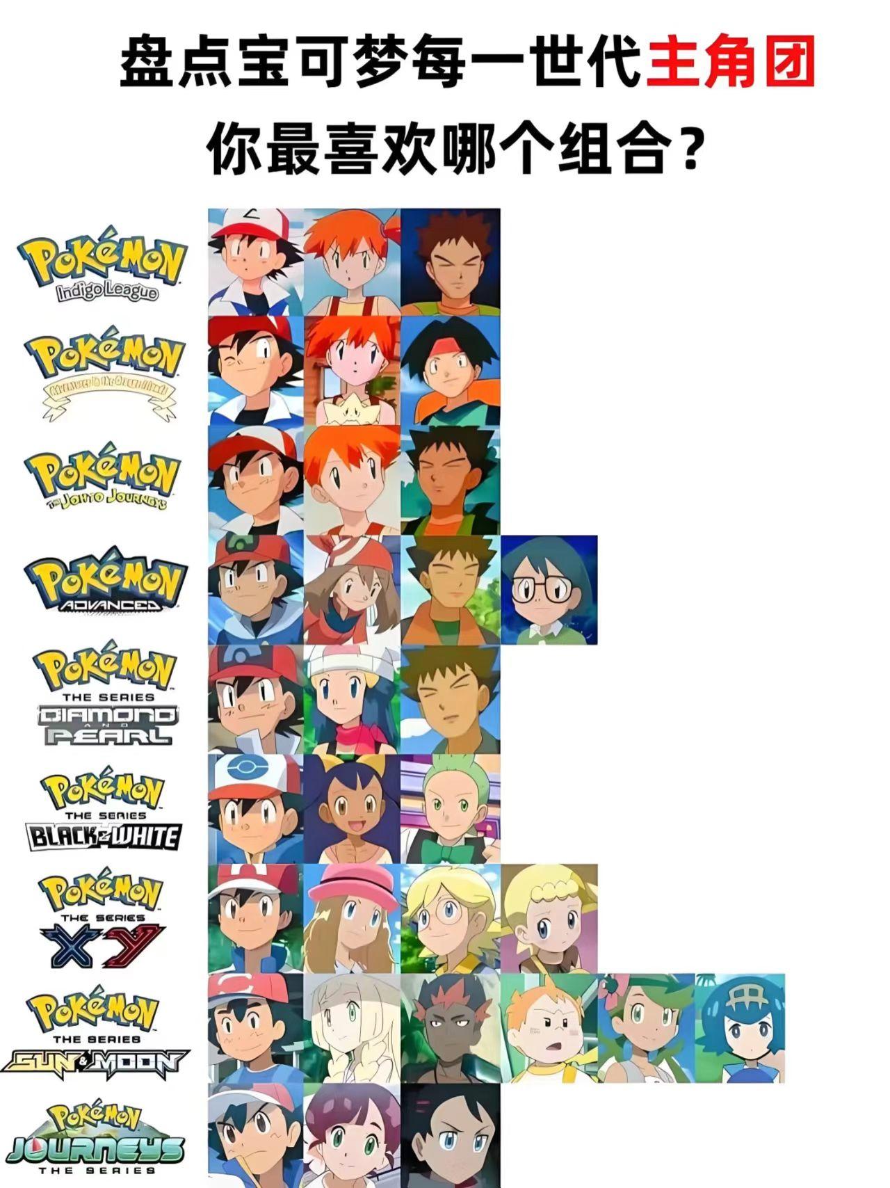 不知不觉宝可梦的主角团们已经陪伴我们这么久了~你最喜欢哪一个组合?又最爱哪一位训练家呢?谁是你们心中的白月光!我自己印象最深刻的还是xy,这可真的是陪伴了我整个童年~#发现好游戏 #游戏杂谈 #宝可梦 #精灵宝可梦 #宝可梦冠军 #宝可梦手游 #囗袋妖怪 #掌机小精灵 #口袋妖怪版本对比 #口袋妖怪手游