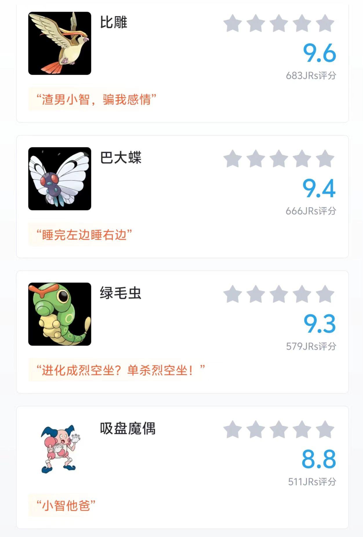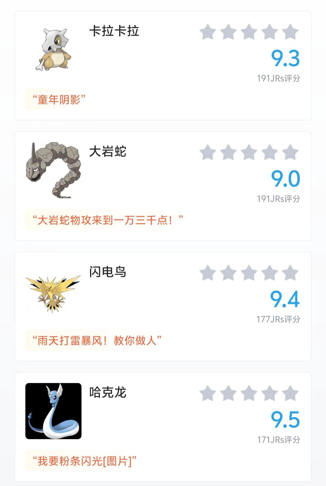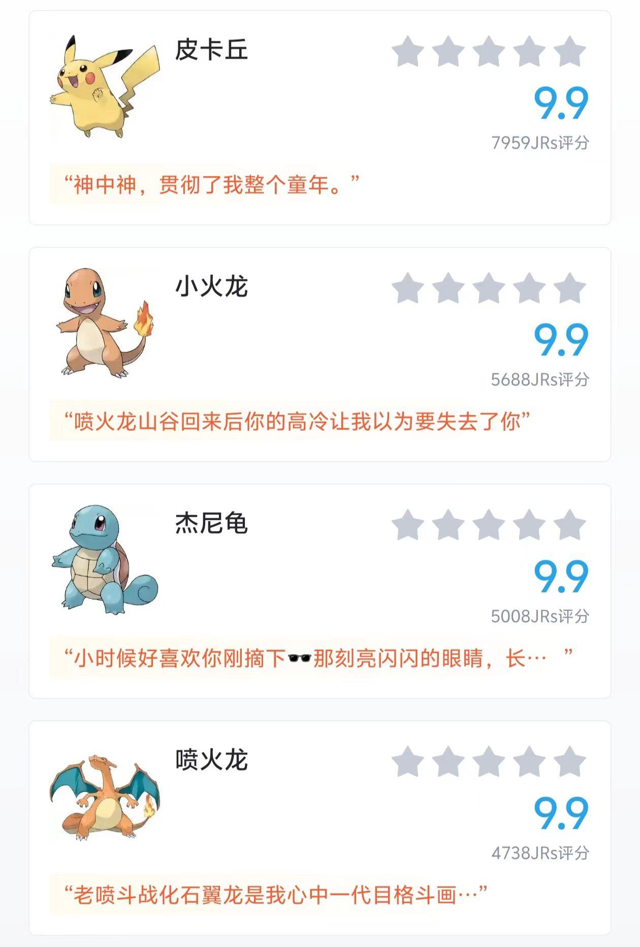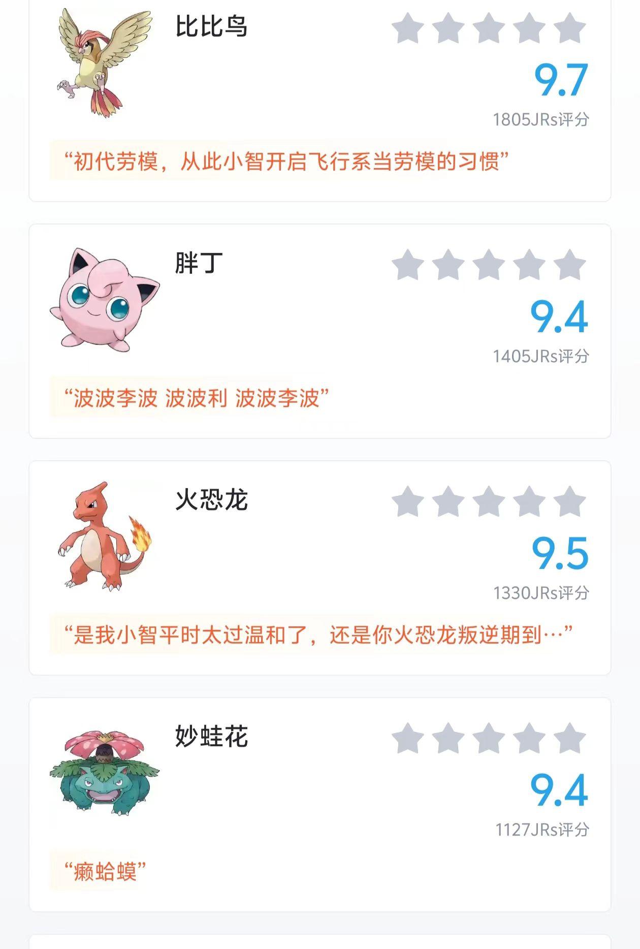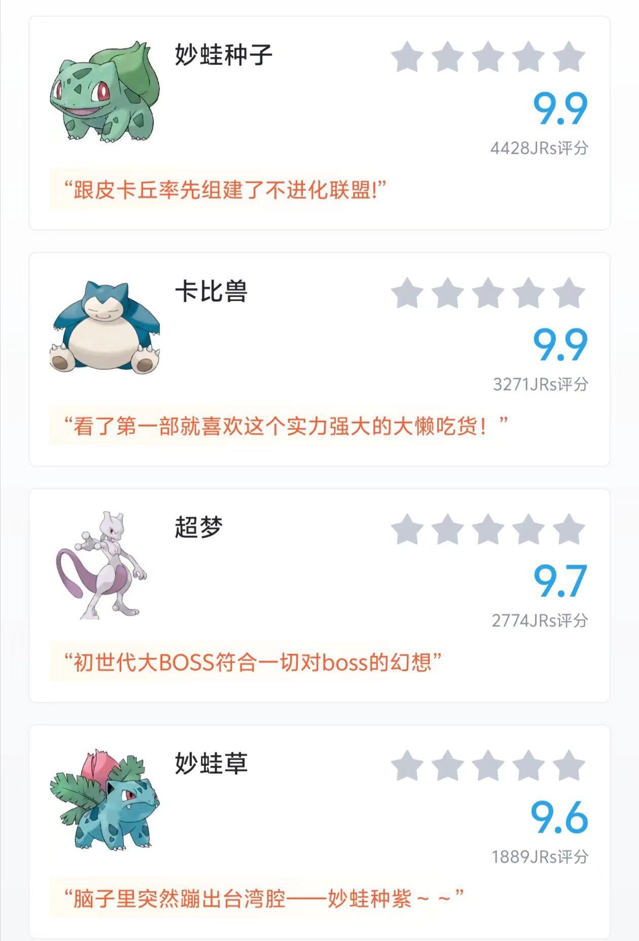 历代宝可梦评分TOP,皮卡丘果然是真神!
