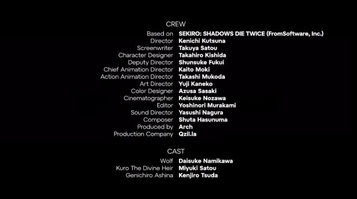 在2025年8月20日的 科隆游戏展 开幕之夜 活动中,《只狼:影逝二度》改编动画正式公布首支预告片,动画定名为《只狼:无败》(Sekiro: No Defeat)!相关信息·制作团队:由日本角川集团、动画工作室Qzil.la及ARCH Productions联合制作。导演楠健一表示团队将“倾注全部艺术构想,还原游戏的精髓与神韵”,并承诺为粉丝和初次接触的观