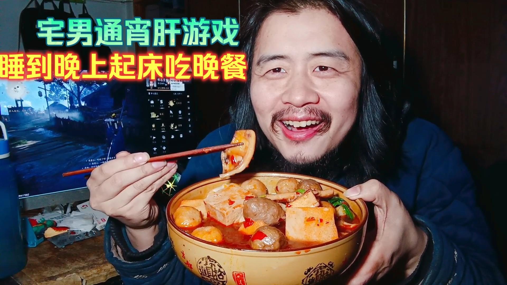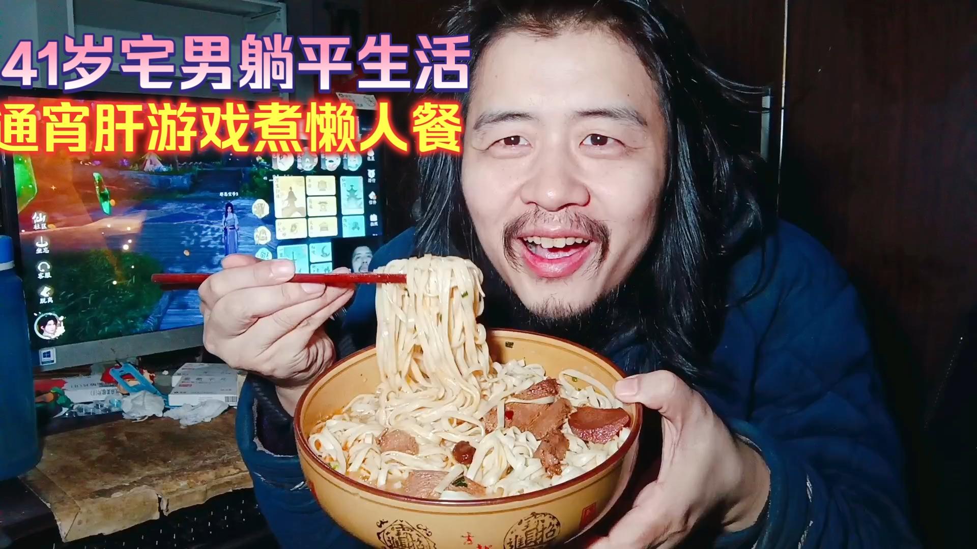 41岁宅男躺平生活,通宵起床煮晚餐吃9元方便面火腿肠吃完肝游戏