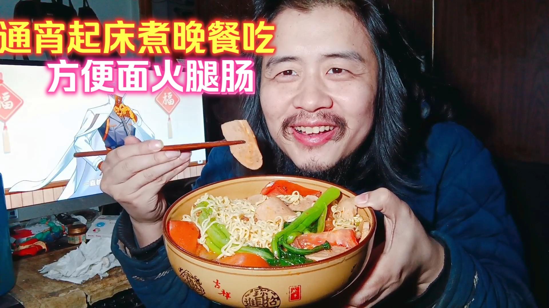 41岁宅男躺平生活,通宵起床煮晚餐吃,9元方便面火腿肠吃完肝游戏#vlog #美食 #生活 #搞笑 #生活记录 #吃货 #吃播 #日常 #独居 #躺平