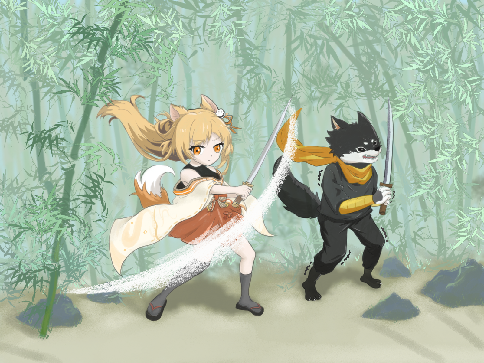 《跟我学!犬太郎》竹林练剑篇~(同人画)犬太郎:师父你慢一点,我看不懂!戌时:…#同人画作 #忍者必须死3
