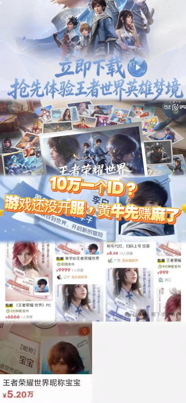 王者世界ID黑市炸了!公测没到ID先炒到十万