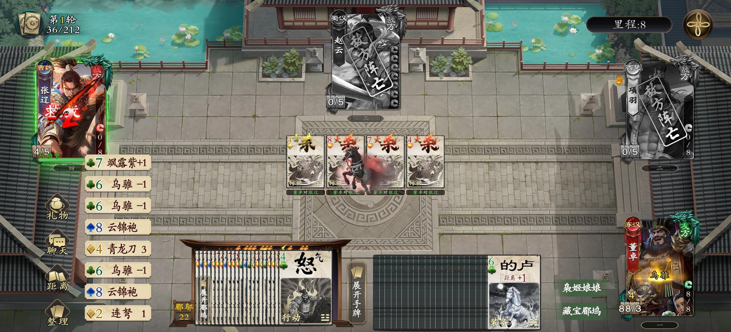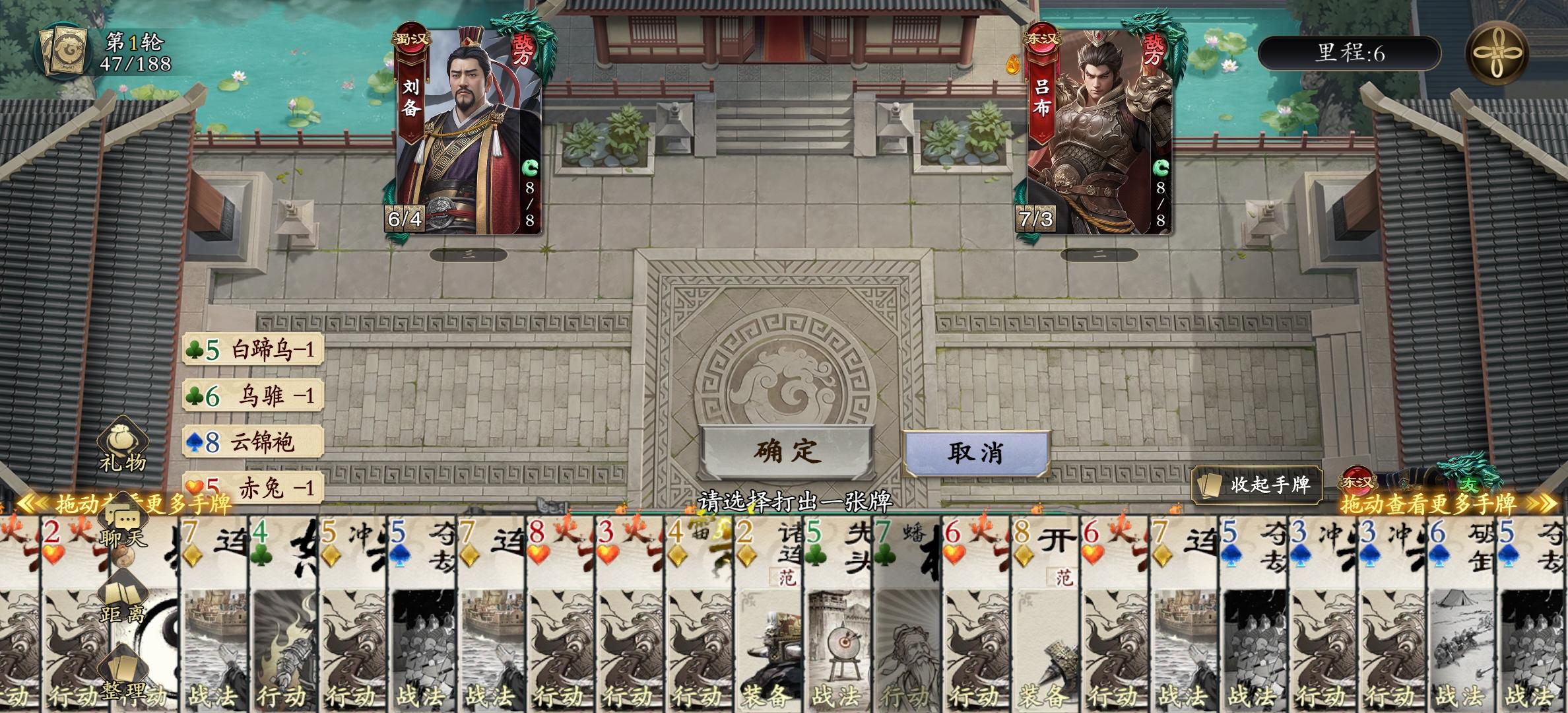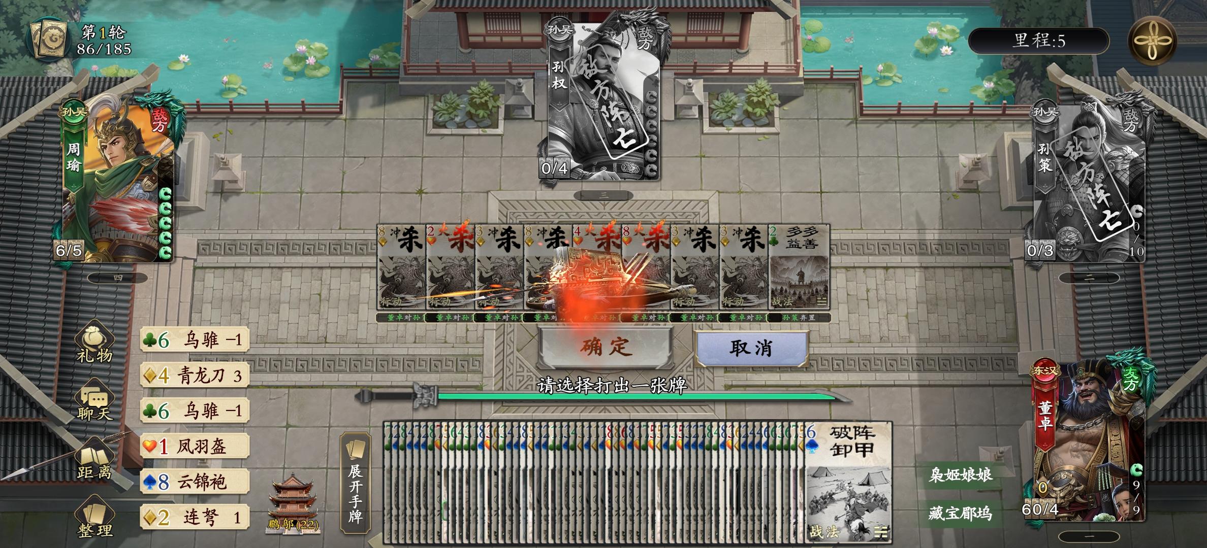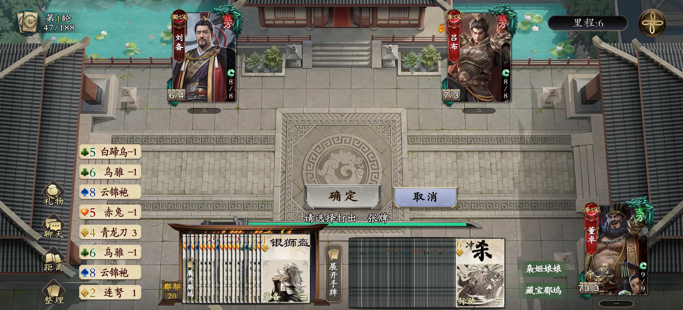 【35】晋 ①对韩信使用顺手牵羊,获得银狮盔,装备银狮盔,回1血; ②对韩信使用借刀杀人,己方掉血触发技能“乱世奸雄”获得1张杀,注意这张杀不能马上使用。再对韩信使用借刀杀人,获得装备惊羽弓。装备惊羽弓,对韩信打出杀,获胜。 这是之前查到攻略,可我这没有借刀杀人啊[表情_暗中观察]#名将杀 #名将杀武将 #名将杀攻略