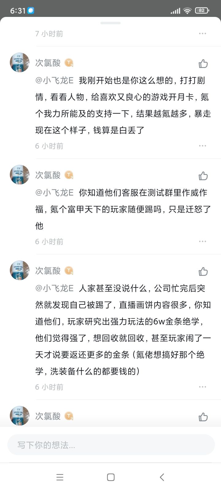 我想说,这游戏也太作死了吧,因为自己游戏很火就作威作福,让玩家当冤种是吧。我当初在玩氪金蜗牛(最强蜗牛)的时候,也没有这么大的冤啊,顶多也就是打打副本,做做任务罢了。很多游戏厂商就是有问题能解决就解决,不能解决,想办法解决,实在不行,就直接道歉,我实在是解决不了。换服了,想办法解决;威力太强,直接削弱,而不是简单的删了了事。我没什么可说了,我只想说,有一个宝马,傲慢的暴雪游戏,动视暴雪诞生