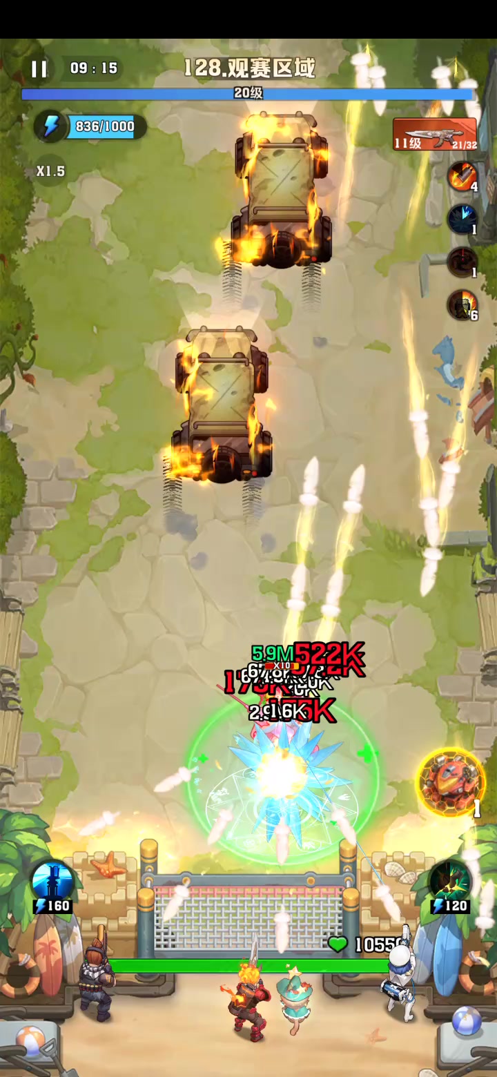 1. 推荐使用的技能组合是冰爆发生器、无人机和燃油弹。这一关玩家将会面对网球僵尸的远程攻击,因此需要准备相应的对策 。 2. 除了技能组合,玩家还需要注意宝石的配置。建议所有部位都换上暴击率宝石,并且优先选择燃油弹和枪械系列技能,全程手动控制枪械,以确保能够有效清除蜜蜂类型的僵尸 。 3. 对于城墙的等级,建议提升到63级,以增强防御能力。宝石方面需要弹道+1,穿透+1(至少2个以上),以提高输出