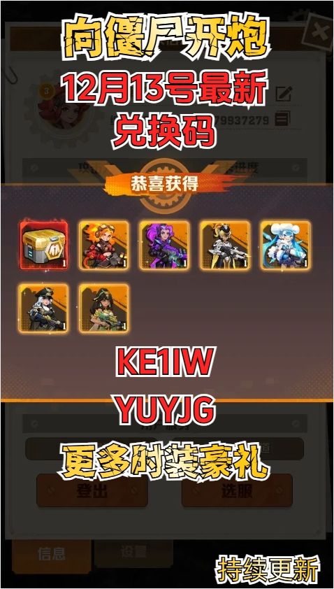 向僵尸开炮12.12最新最全兑换码,时装礼包