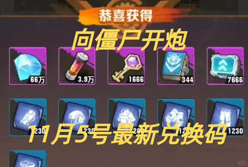 亲测可用兑换码~复制区在底下哦~MTDM666 1把璀璨钥匙,50体力,5000金币EZRS2485 3个璀璨钥匙,100体力WJQFL66 焕新试剂*3、璀璨宝箱钥匙*1、体力*30 、金币*1000、装备图纸*20 另外还有隐藏联动福利!!!!!进🐧群(605724215)第一时间获取最新游戏资讯还有很多隐藏兑换码等你。DYLB2023 体力*15 金币*1000VIP666#向僵尸开炮