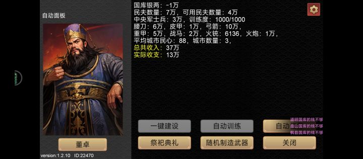 老玩家了bug:吞军队,割地割出去军队也没了攻城后判定有问题,守住了有时还是判定丢了。长城无法建设,一建就卡住还有就是国库一万万两会显示成一亿万两建议:ai人物太丑,不如真接用帝2的,或者换个ai重跑一下也行。#bug反馈 #君王成长计划 #