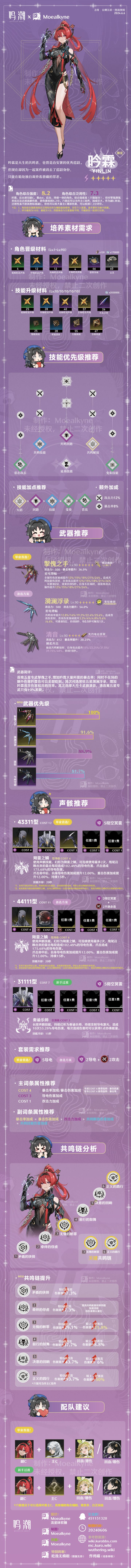 【此角色一图流适用公测!相关数据已经过库街区wiki查询~】【公测UID:100532881】各位漂泊者早上中午晚上好呀,这里是熬夜作图两小时的Moealkyne,本次给大家带来的是「吟霖」角色一图流攻略公测翻新版本~ 吟霖是天生的共鸣者,也曾是治安署的优秀巡尉。但现在却因为一起案件被消去了巡尉身份,只能在暗处独自调查着潜藏的罪恶。 如非特殊声明,全系列长图采用署名-非商业性使用-禁止演绎