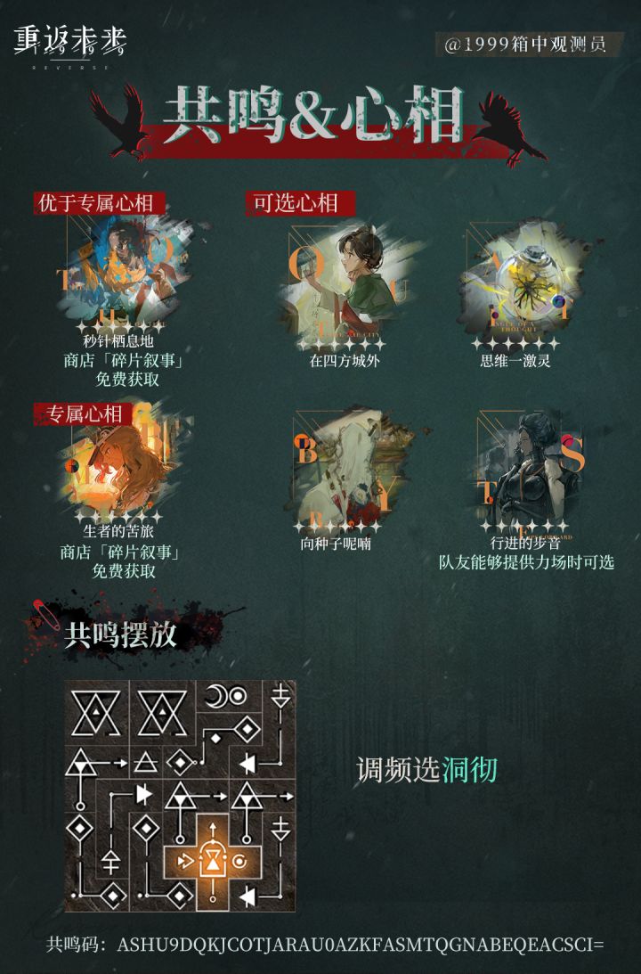 六星智系角色告死鸟-Corvus 主双暴和创伤加成,调频选洞彻共鸣码:AShU9DQkJCoTJARAU0AzKFAsMTQgNABEQEACSCI= P2洞悉解析P3技能解析P4心相&共鸣P5配队&实战手法 我是带来最前线播报的观测员,内容制作不易,求司辰们点点关注~追更不迷路!祝司辰们告死鸟卡池欧气满满!#重返未来1999 #重返未来1999攻略 #重返未来1999长夜
