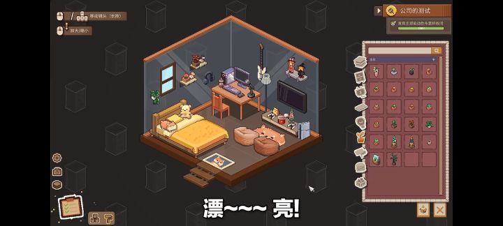 谁能拒绝一个精致的像素装修布置类游戏,先撇开剧情方面内容,游戏本身就是装修小屋,或者整理小屋。游戏内的家具可以四面旋转,只是摆放位置还是贴格子。玩过《unpacking》的玩家应该会喜欢!小镇户外看到的垃圾桶、井盖等等,都是可以翻找的,找到的物品有的还能当摆件。接单的话其实能慢慢地接触到当地居民一些背后的故事,当然,也会挖掘出与温馨美好的表面截然不同的发展。但是!接下来要