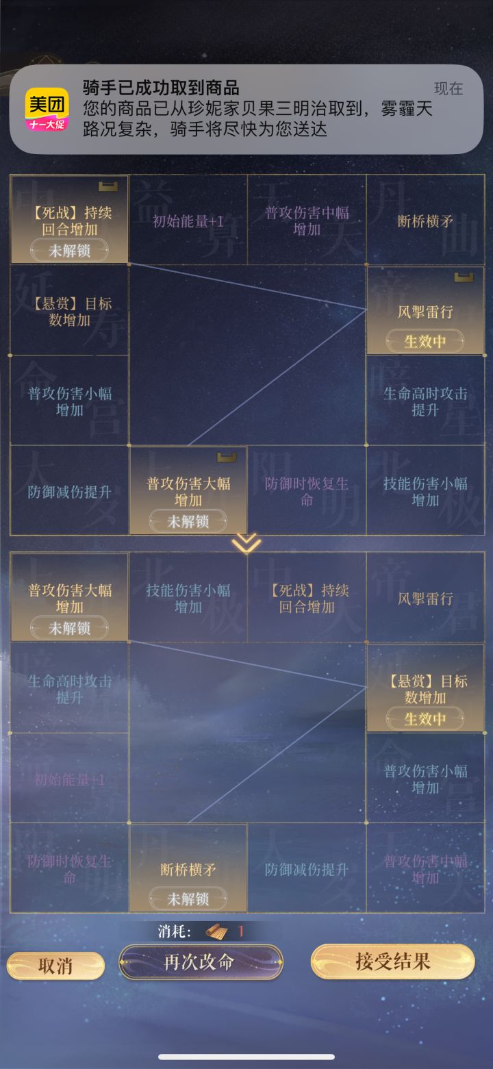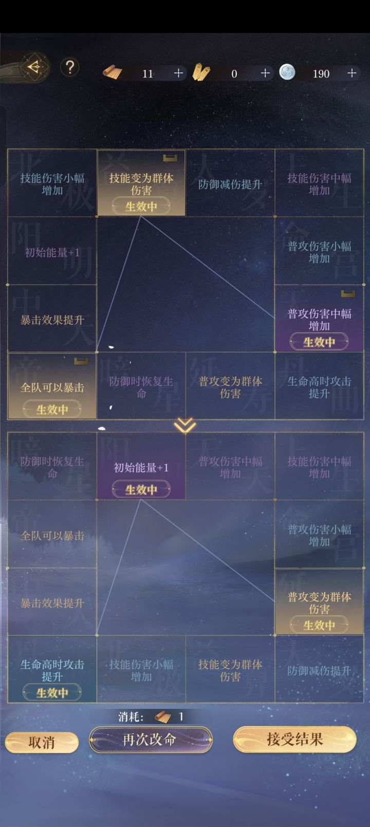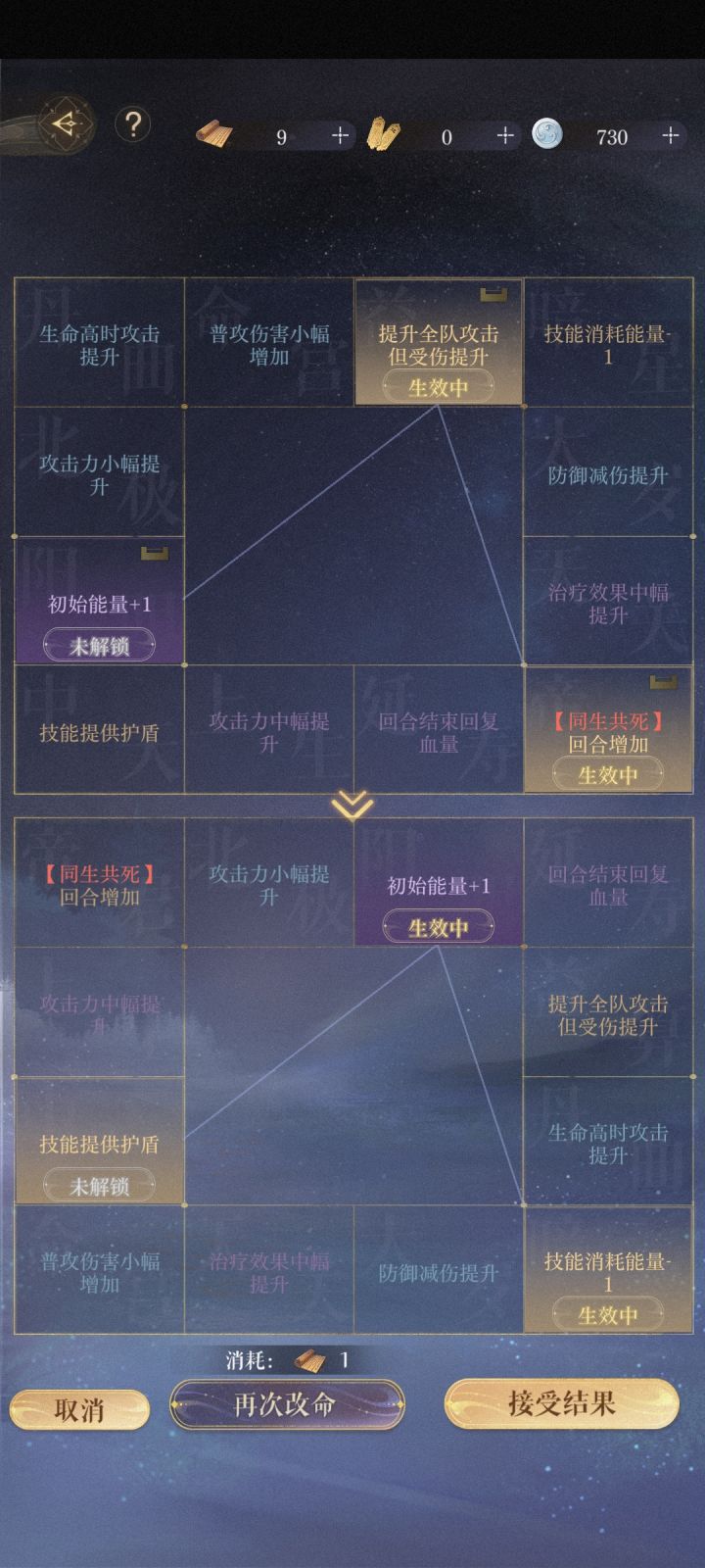 因为我自己抽了好久才把密探抽齐,所以补的比较晚,0氪党的悲哀。周瑜是目前输出比较稳定的一个c位了,二星后还能拉人复活,功能性也很强,也弥补了水系输出密探的空板。闪电战命盘:(初始能量+2)+(余音绕梁)可以作为过渡期使用,但对于目前关卡环境的快速度以及boss具备的成长性来说,对我们很有利,可以在前4回合内打出高额的爆发伤害。完美命盘:(余音绕梁)+(技能消耗提升,但效果更强)+(削弱普攻