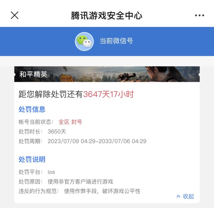 和平精英ios Q区,id 晚循yyds,数字id 2112214227 ,QQ账号2175137401,在2024年1月3日凌晨12点左右游戏中突然跳出数据异常,重新登录后说我有违规游戏行为被封停3650天,我和我的3个好友像往常一样打四排,我也从未使用过第三方非法软件修改游戏数据,从始至终都是绿色游戏,凭什么封我号,我的击杀数和kd都和往常一样没有任何异常,我想问问我花了那么多的时间,心血,金