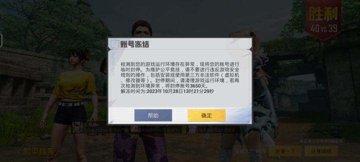 和平精英几年没玩了进入游戏怎么是封禁状态呀?2028???