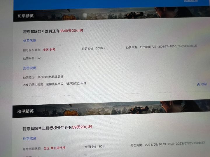 2022年六月二十三号晚上,扫码登录让别人代打了几局游戏后,无法登录游戏,显示被封号!距离今天已经过去了接近一年半的时间,这一年半以来一直寻找各种方法能够解封,这个游戏账号对我来说很有意义,恳请官方给予机会!本人保证以后杜绝此类情况再次发生,如果能够解封,一定多抽皮肤,多做贡献#和平精英账号申诉#我的和平精英账号被误封#和平精英账号,莫名其妙的封号。