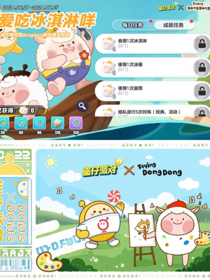 夏日有羊“咩”烦恼!《蛋仔派对》× Flying DongDong联动治愈而来6.21活动正式上线,我只能说香肠派对你什么时候出新活动王炸暑假档期二周年庆典狂欢来袭,小羊齐聚共度美好时光,国民原创乐园游戏《蛋仔派对》× Flying DongDong联动治愈而来!由全民票选而出的“鸭鸭DongDong”6月14日抢先登岛,“蜜蜂DongDong”与“DongDong”两位熟悉好友6月21日携五